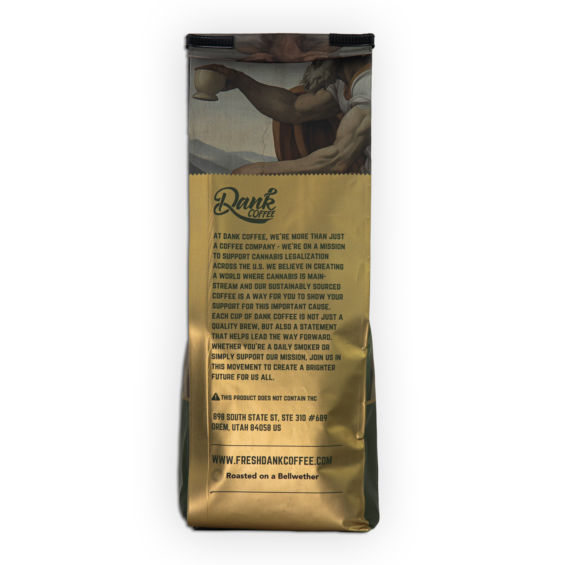Say goodbye to your standard light roasts and hello to a cup of joy that'll have you passing smiles around like a joint at a party. Our light roast is bursting with notes of toasted marshmallows and chocolate. Whether you're enjoying it with your favorite strain or on its own, this blend will awaken your taste buds and set your mood to 'happy'. So get ready to sip, smile, and share the light!